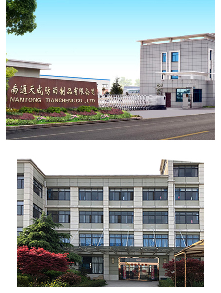 南通天成防雨制品有限公司是一家生產各種防雨制品的專業企業,公司創建于一九九六年。公司自創辦十幾年來,持續發展壯大,現有廠房面積一萬多平方米,主要生產設備從德國、日本進口。現有公司員工二百多人,日產量二千(套)件。南通天成防雨制品有限公司位于江蘇如皋天成工業園惠業路8號緊鄰沿海高速、二零四國道,距南通機場、如皋機場、南通、如皋火車站、如皋港均不超過一小時車程,交通十分便利。